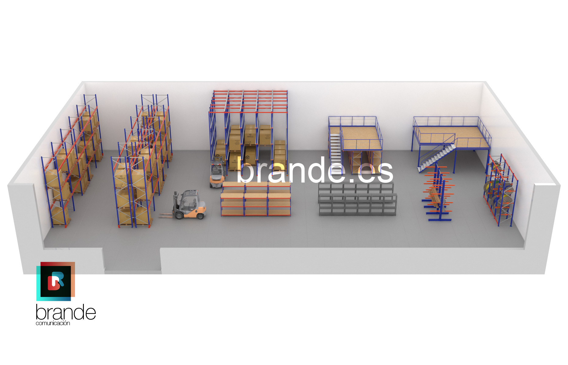 Realizamos el modelado 3D y las infografías para una empresa de estanterías profesionales, tanto para el sector de comercio en supermercados y tiendas, como para almacenamiento.